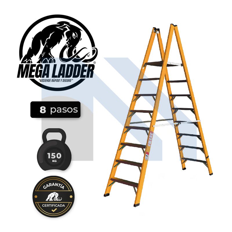 ESCALERA DOBLE ACCESO C/PLATAFORMA FIBRA DE VIDRIO MEGAHOIST 08 PASOS