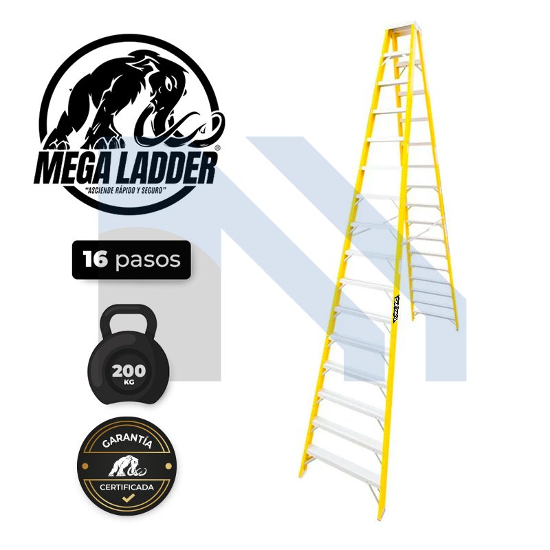 / ESCALERA DOBLE ACCESO FIBRA DE VIDRIO MEGAHOIST 16 PASOS