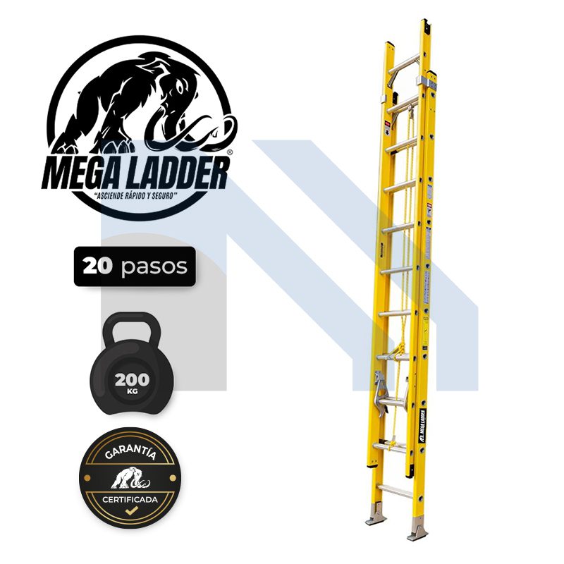 / ESCALERA TELESCÓPICA FIBRA DE VIDRIO MEGAHOIST 20 PASOS