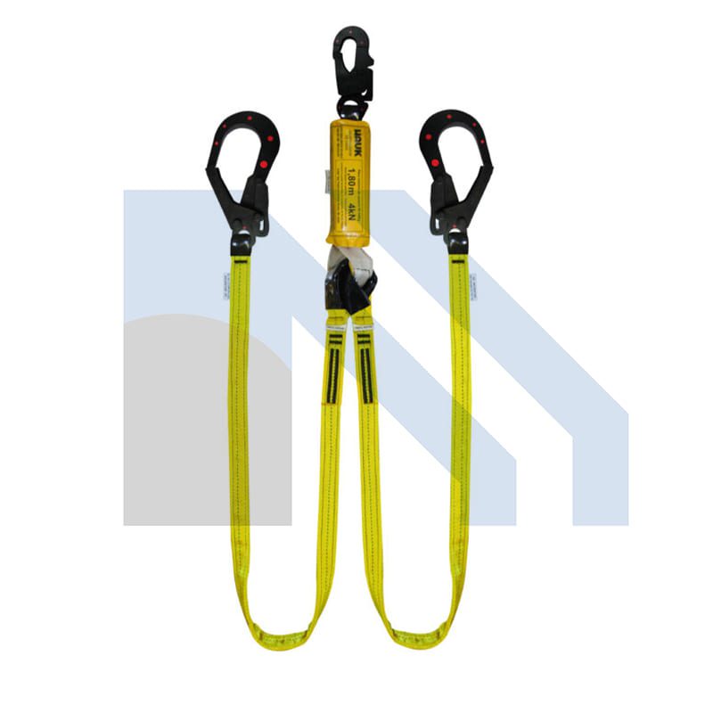 Linea de vida con amortiguador de caida 1 gancho de 3/4″ dielectrico y 2 ganchos 2 1/4″ dielectrico